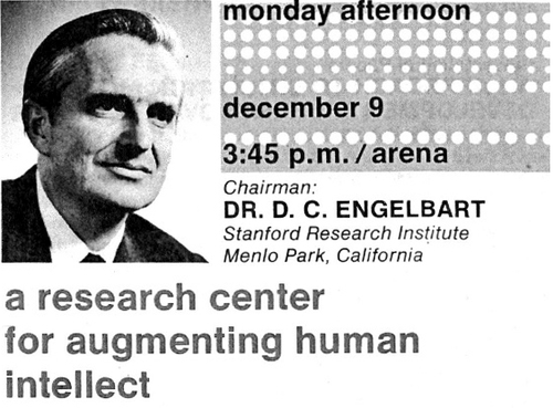 The 1968 demo is celebrated because it showed the use of computers as we have it today, all developed by a single team of inventors. But as this picture of its invitation flyer might illustrate, the reason for creating this technology was not technology itself, but something much larger—it was to use information technology to “augment the human intellect.” Doug was especially interested in “augmenting the collective intelligence” i.e. our ability to think together, and solve our increasingly complex problems. Doug never tired of emphasizing that technology and the social processes through which it is being used must be developed together.